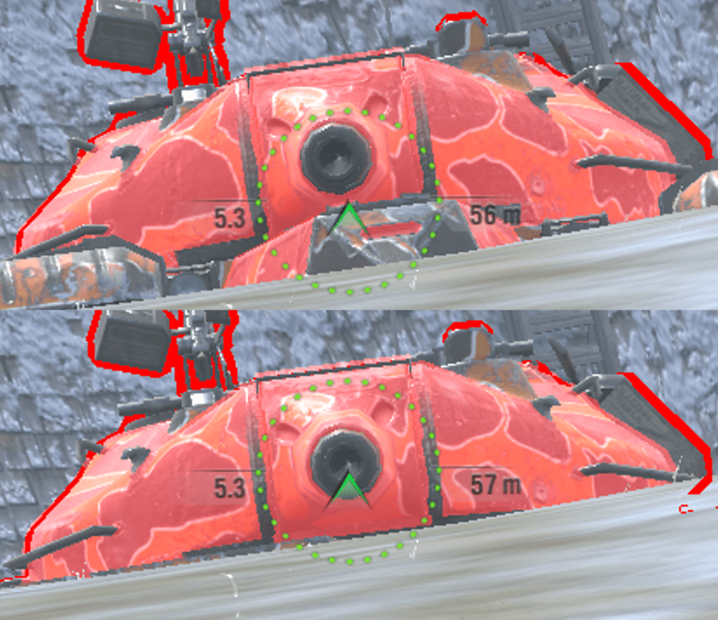 Note that the top image is when the hull is in front of you, the bottom image is with the hull turned completely to the side (which hides the driver’s viewport).