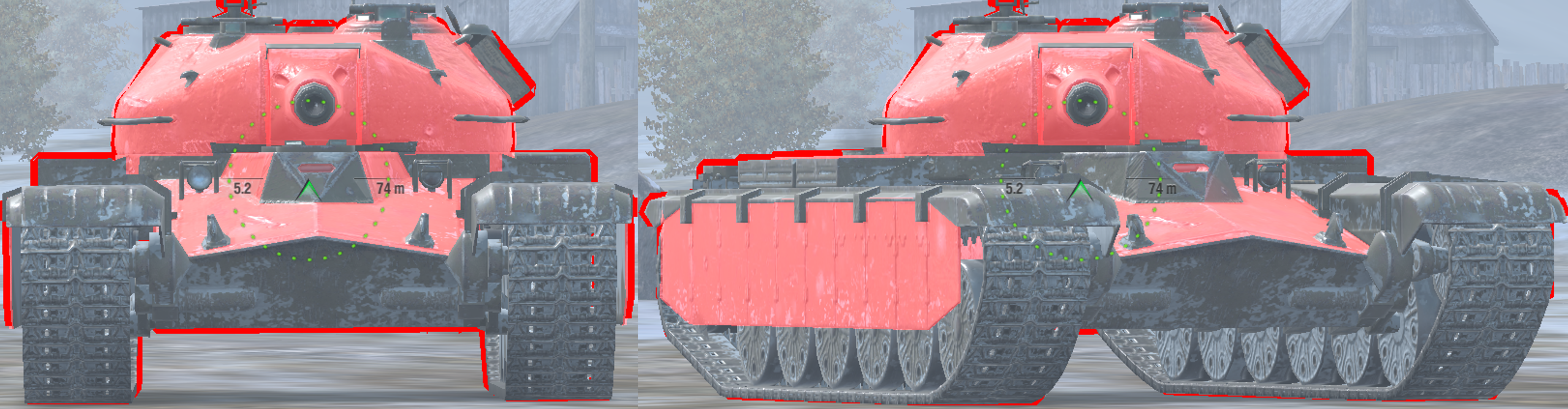 Note that the left cupola is not modelled, if you shoot it, you won’t damage the tank.