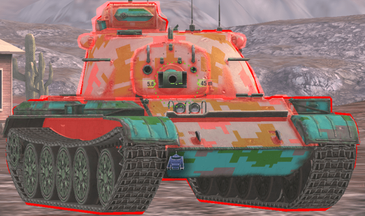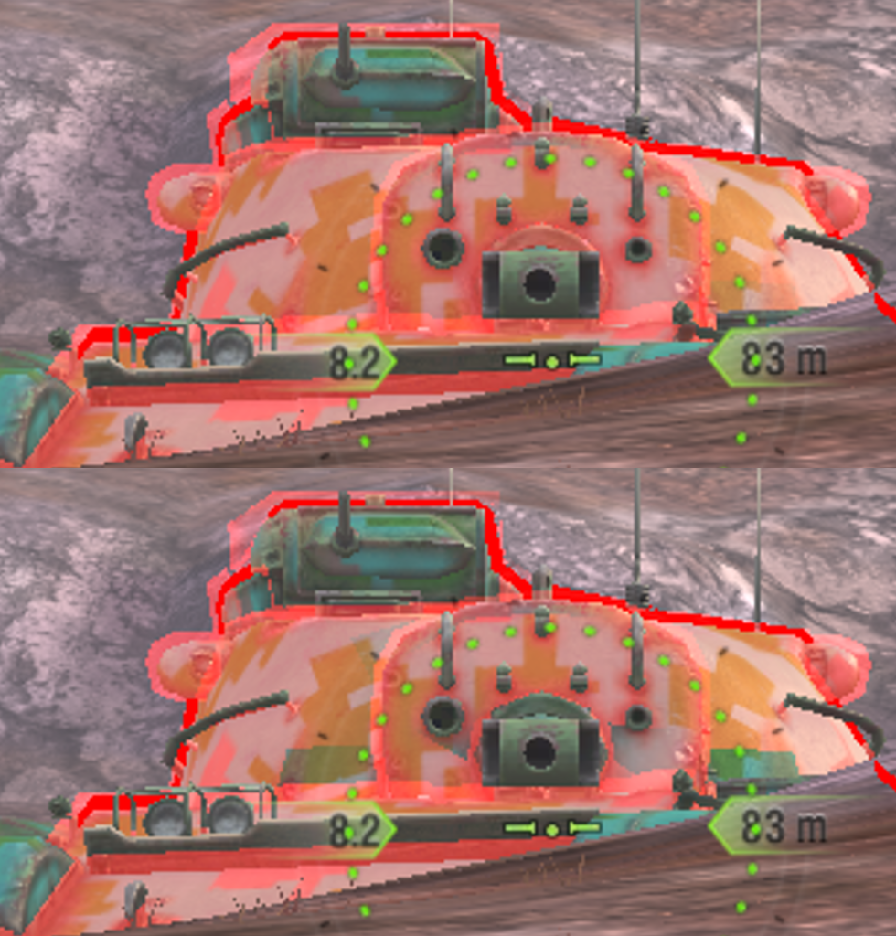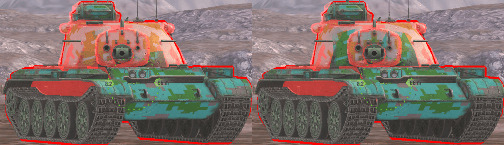 Using enhanced armour really helps the 59-Patton to bounce shots on all areas of its armour. It makes a difference to the turret cheeks, cupola, and both upper and lower plates. It will improve: