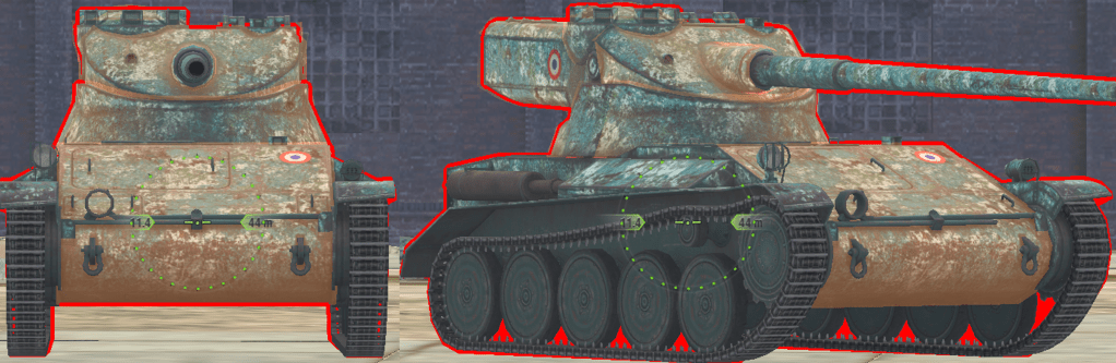 The tank has got decent armour and a small profile for a light tank. Its mobility is nothing special, but its still fast and agile like a light tanks should be. The gun is very unique for its low alpha and high capacity magazine, it has great accuracy, handling, penetration, aim time, and gun depression (for an AMX 13 tank).