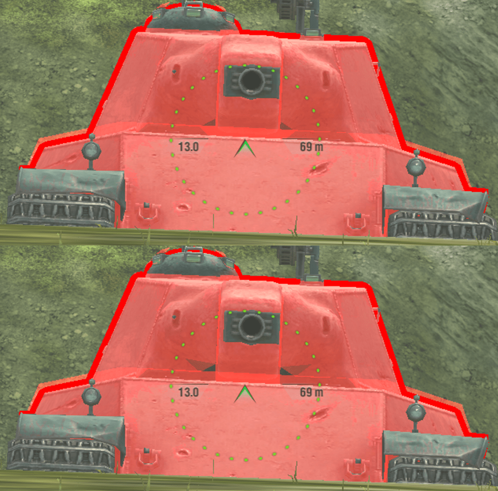 The AMX 49 generally shouldn’t turn the hull at all, as the sides are a very weak 55mm of base thickness, which makes them very easy to penetrate to HEAT rounds, and if over-angled. Higher penetration HE rounds also have no issue penetrating the sides if they are flat.