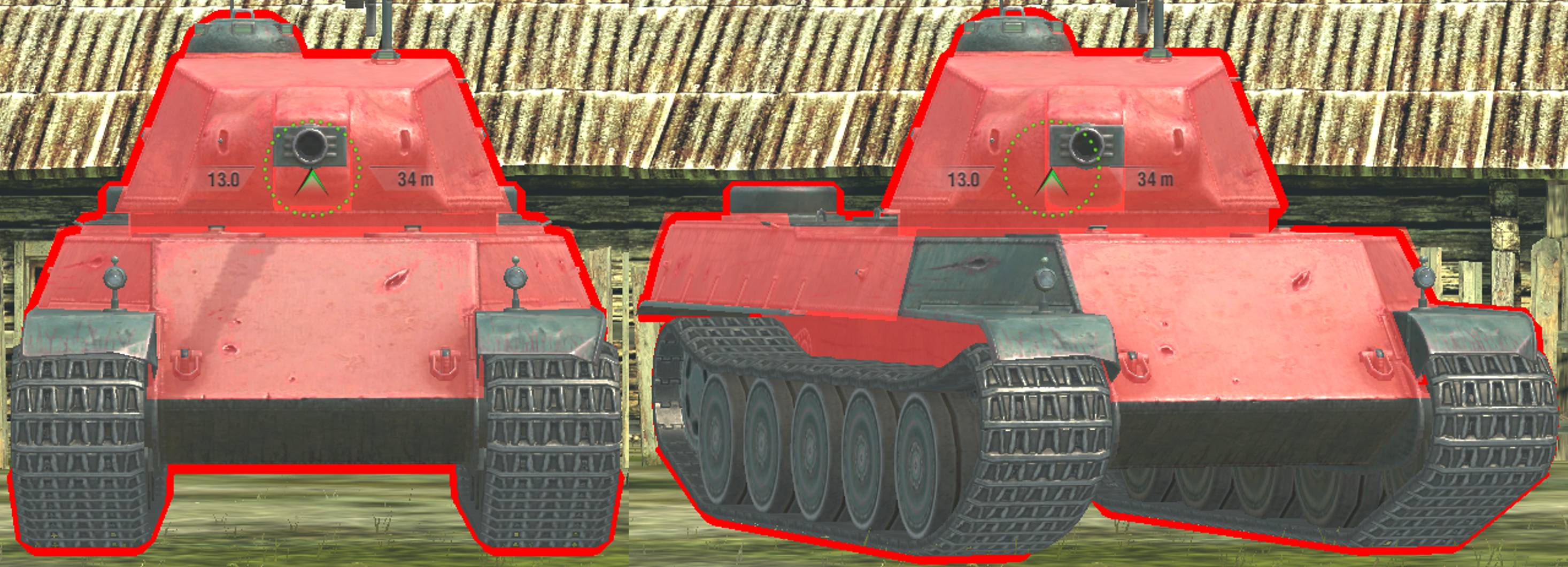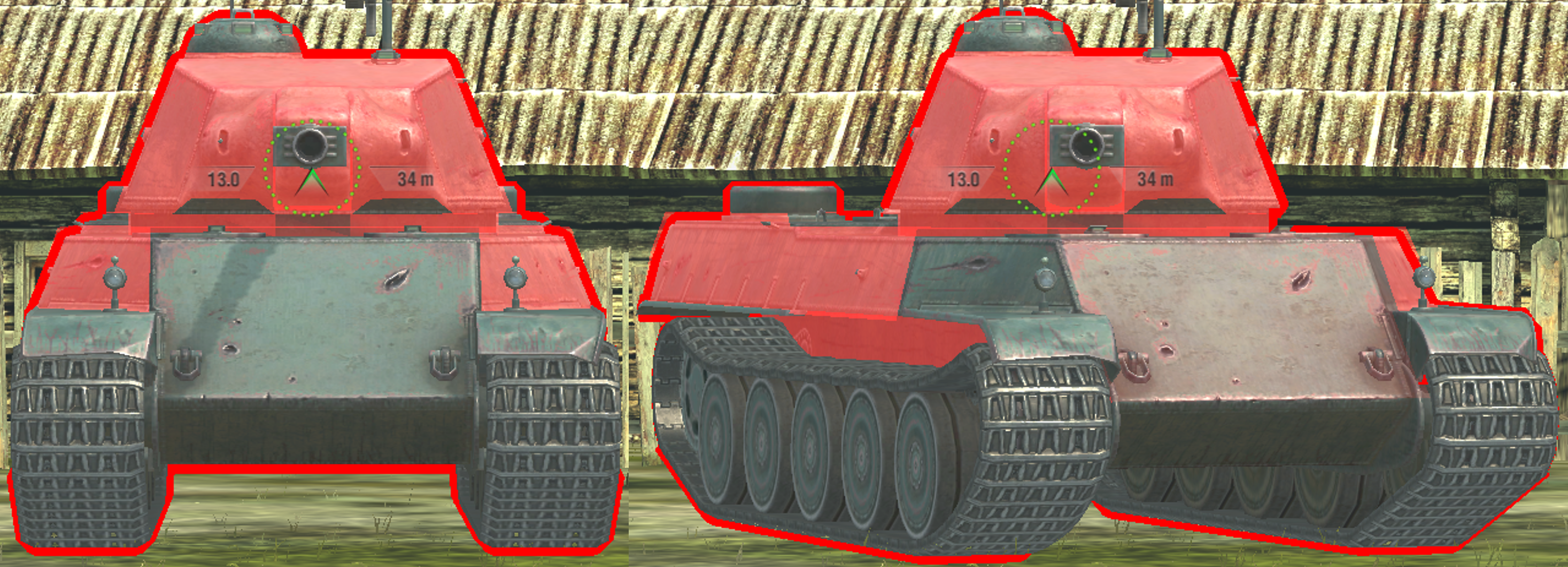 Penetrations through the well-angled track wheel happen due to double-overmatch occurring on your tank’s thin 55mm side armour.