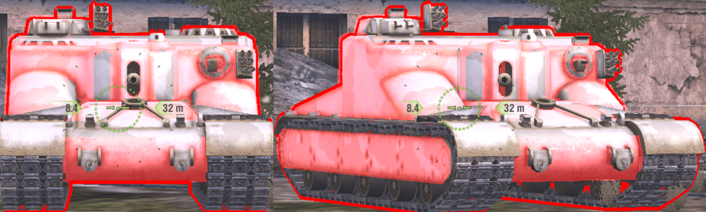 The tank does have -10 gun depression, but as the armour is already all red on flat ground, there isn’t any image. The armour would increase to: