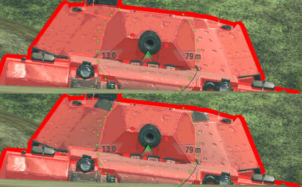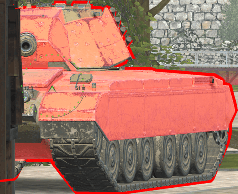 In the review, the areas on the turret which aren’t covered by spaced plates will be referred to as the turret weakpoints.