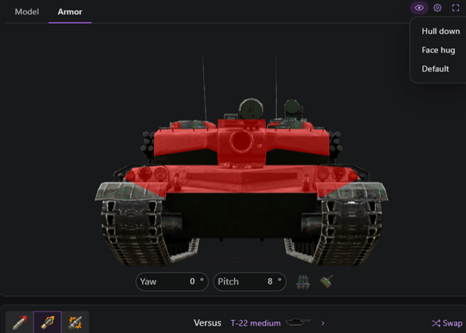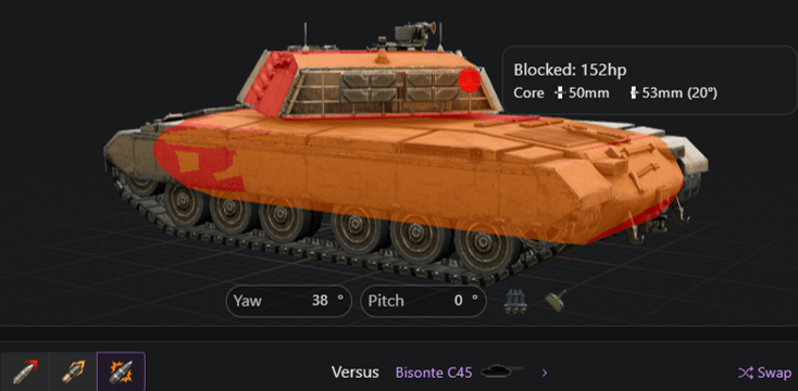 While gamemodels3d has an combined armour/model viewer similar to Blitzkit, it lacks posable vehicle models (you can’t move the turret/gun), and it also doesn’t have a “live” penetration feature.