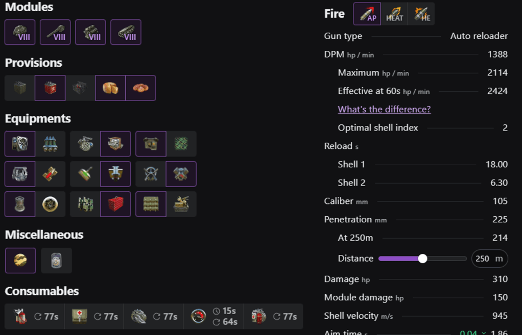 So far this is one of the most accurate Blitz sites, with true armour portrayal and highlighting, and correct mobility values and consumable effects. It also has an easy to use and simple UI.