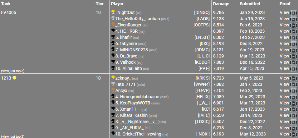 There is a filter to choose any tank and see its highest scores and a replay to prove that score.