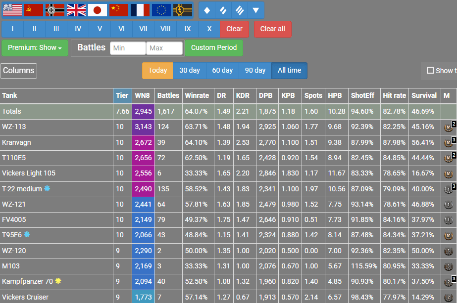 There is also a filter to show stat changes, so you can see how you (or another player) has improved in their tank statistic performance.