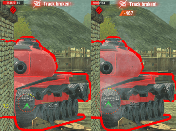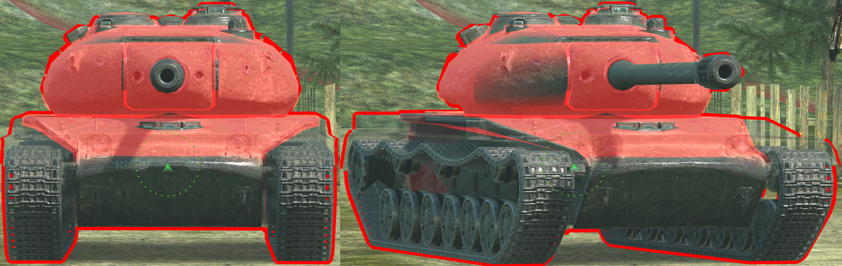 Notice that the reticle is aimed in closer to the inside of the hull on the shot that deals damage. At this angle, if enemies don’t aim on the inner half of the front track wheel, all other shots will deal no damage.