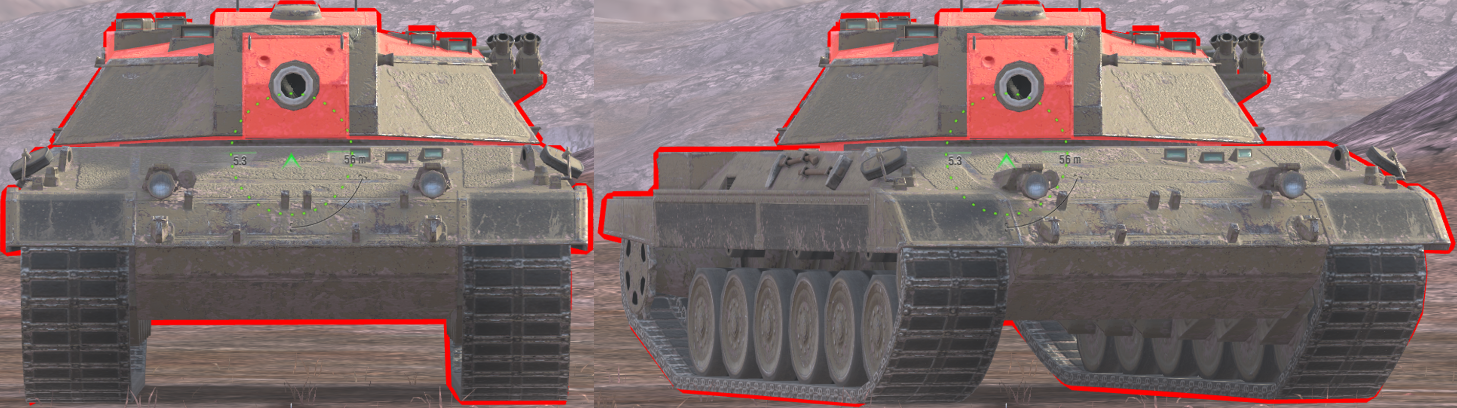 -On flat ground, all tanks can easily penetrate the mid-upper and mid-lower plates, due to them being poorly angled and very thin.
