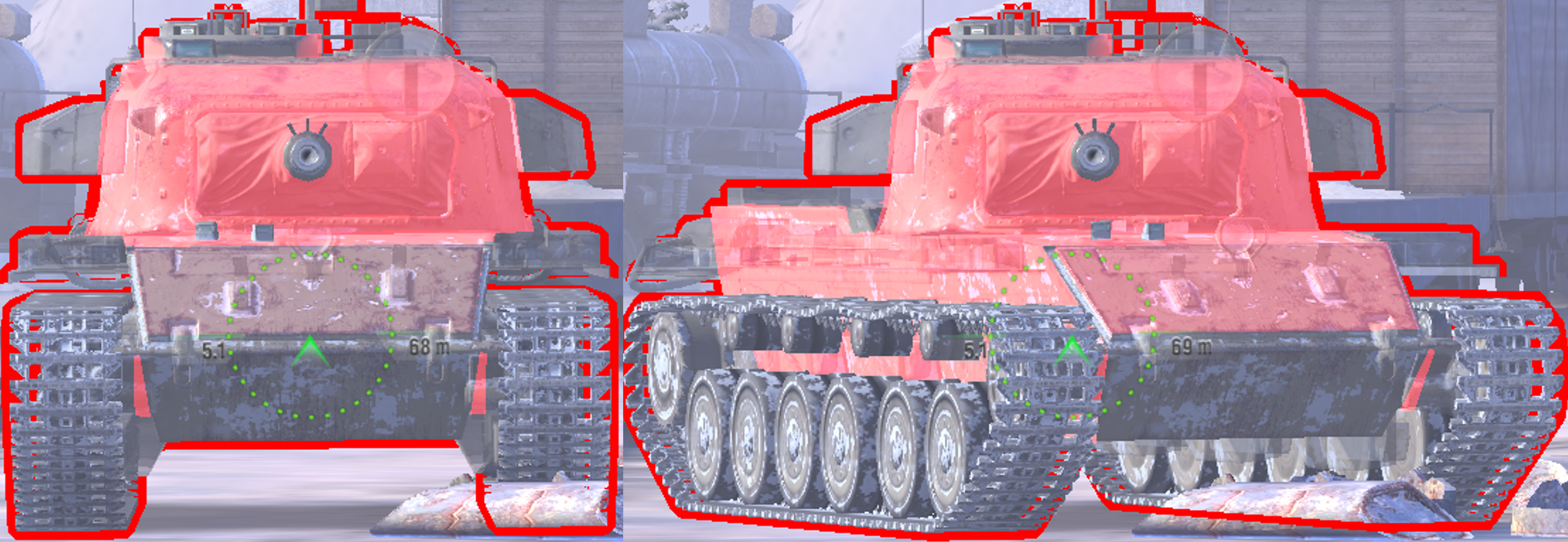 You can see this below, with the image showing the tank against 210mm AP. The image shows the upper plate as already slightly red.