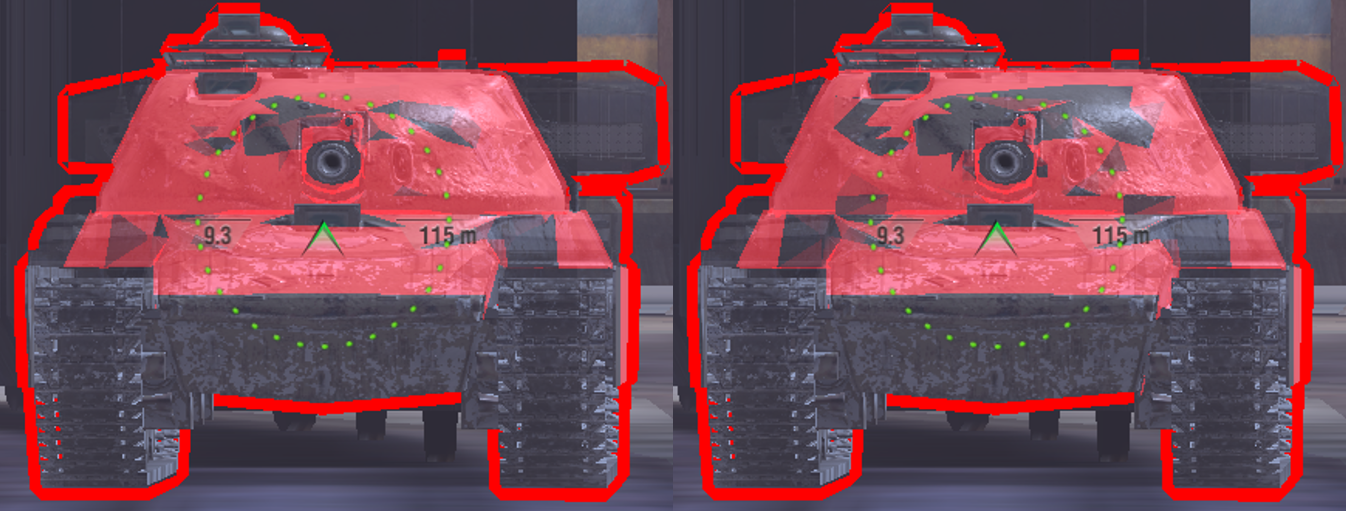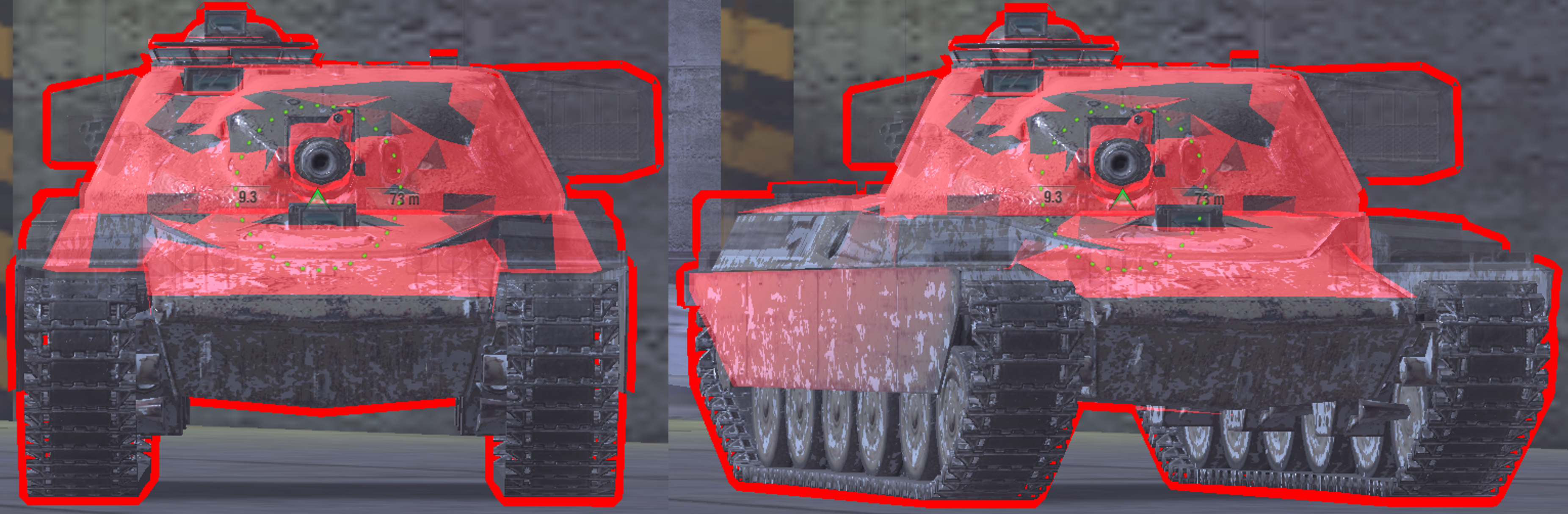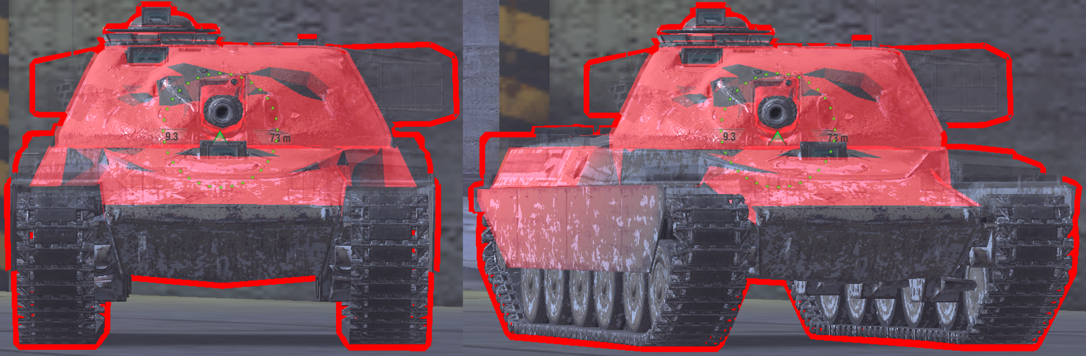 Enhanced armour on this tank only really benefits the turret, and doesn’t benefit it by a large amount. The effect of enhanced armour can be seen with the below image slider.