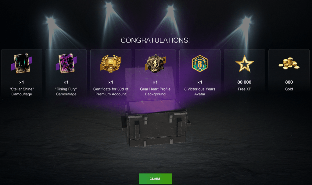 Players who have played for 8 or 9 years will have to wait for a pop-up offer (shown below) to appear in the garage, and then you can select your tank reward.