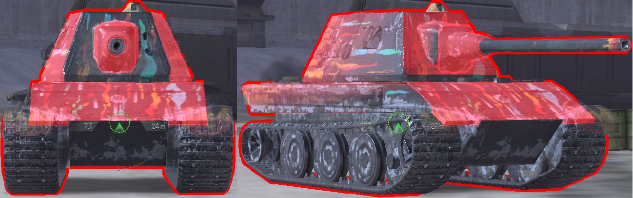 Against tier 6 tanks the E-10 only really has 2 weakpoints on its armour profile, these are the lower plate and the thin flat bar at the bottom of the turret.