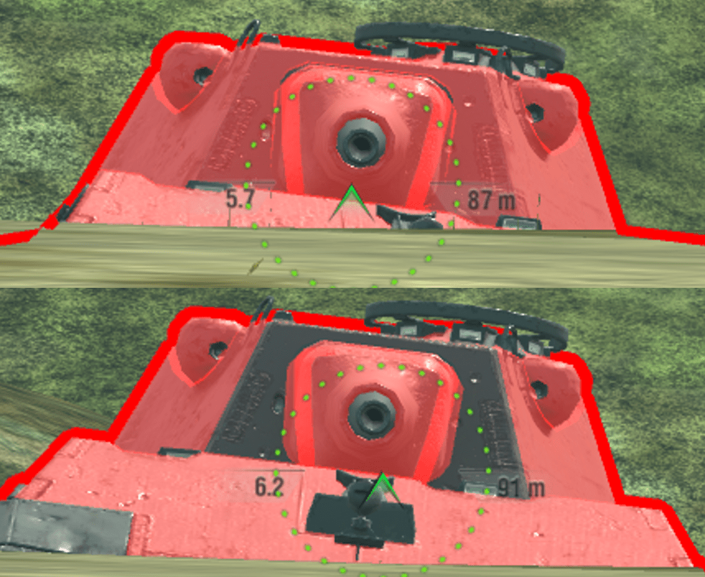 When hulldown, the E 50 M will bounce most shots, but there are weakpoints enemies could hit, and those are the turret face left and right of the gun. You can move the tank slightly to throw off the enemies’ aim, and they may accidentally hit the gun mantlet or turret cheeks, both of which are stronger than the flat turret face.