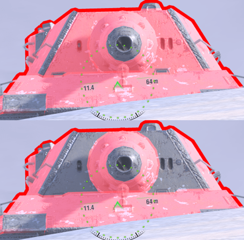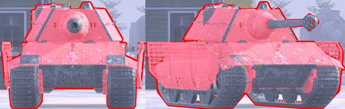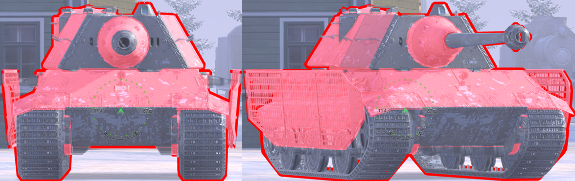 Try to avoid over-angling, since if you turn the hull too far, a good player will know to shoot the front track wheel (as in the right image).