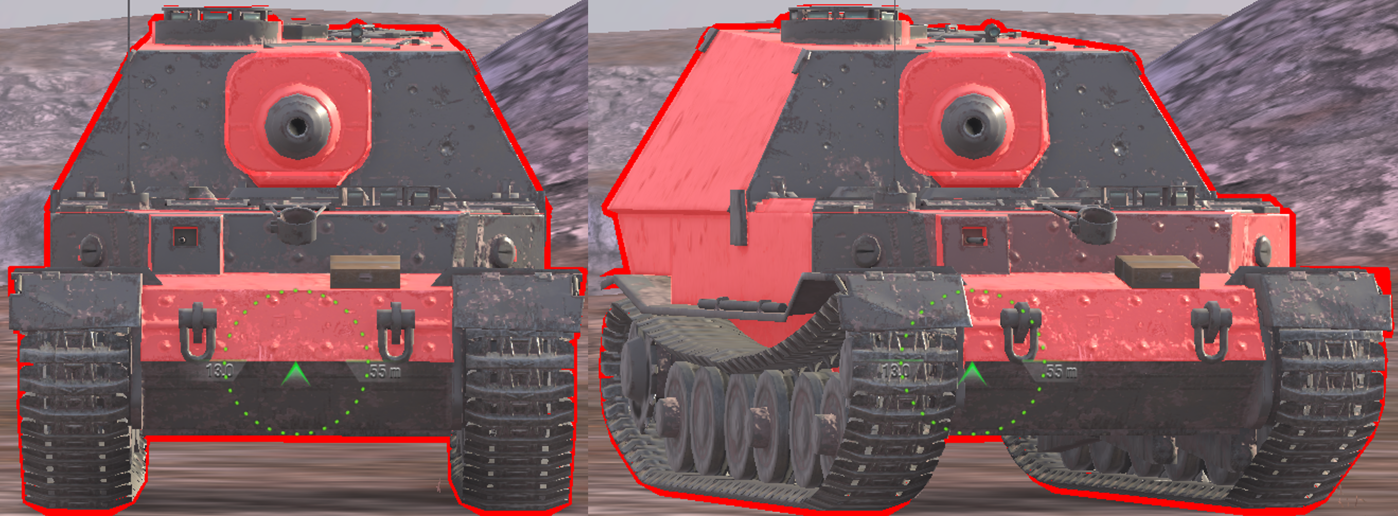 -The 3rd image shows the Elefant angled around a corner but over-exposed. The furthest hull shoulder is very strong, the superstructure is angled, but the closest hull shoulder, cupola, and lower plate are all exposed.