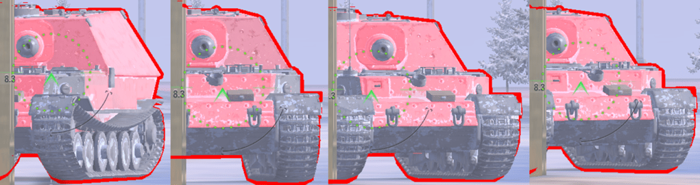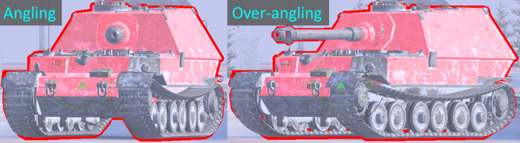 -The first image on the left is essentially a “normal” sidescrape. It helps to increase the superstructure angle and make the lower plate harder to hit, but exposes the hull shoulder.