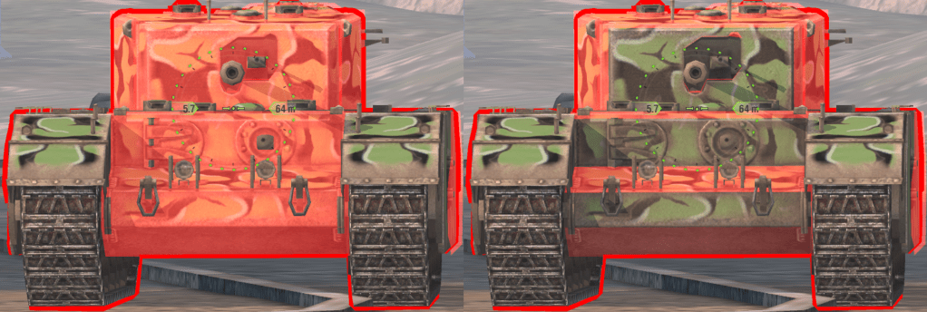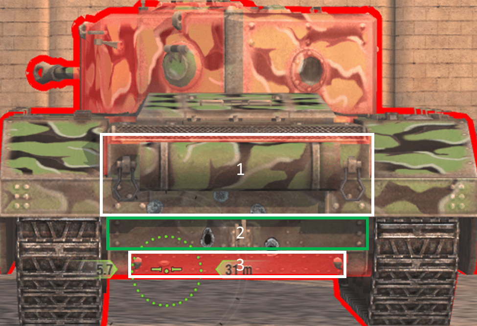 -Shooting the track drive wheel of the track will almost always be a penetration, as this tank can’t angle over 70 degrees.