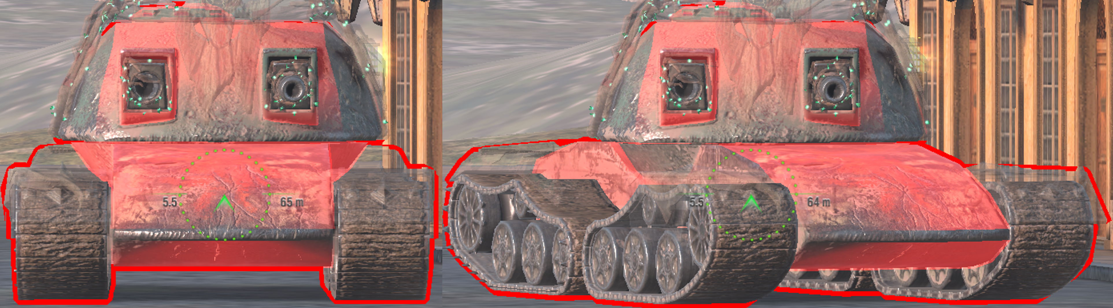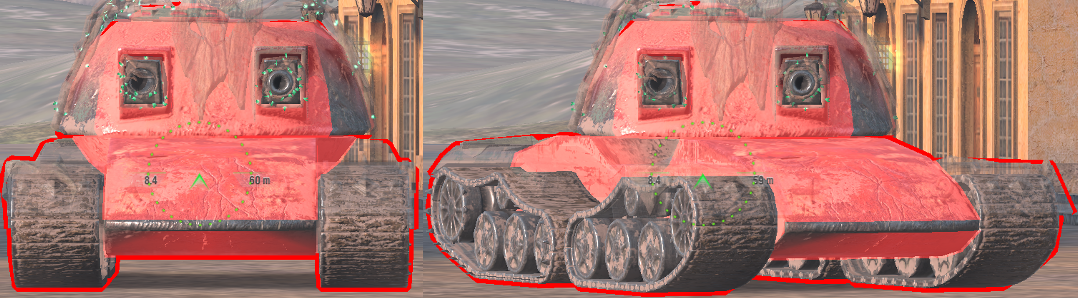As shown with the above images, the very edge of each side of the turret is weak. These are the largest and most reliable weakpoints to go for on this tank. Most tanks in tier 6-8 can penetrate them using at least one of their ammo types, and its very hard for the Forest Witch to hide these weakpoints.