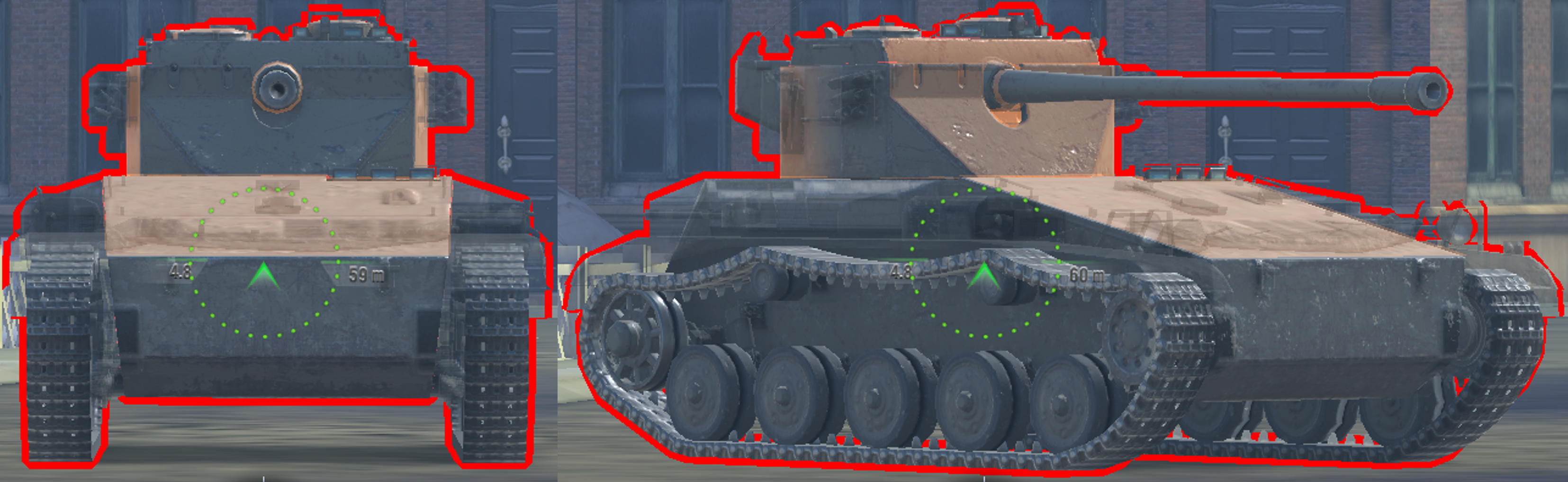 Armour is terrible in all aspects, weak to AP, weak to HE, and terrible HE/HESH protection. Tank is also not hard to hit due to being boxy, and its tracks are thin and don’t cover the hull much. It also has no odd angles to troll HE, as nearly all armour plates are flat.