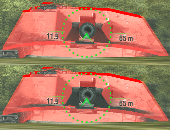 The lower plate is very weak (130-140mm) and prone to HESH (even from tier 8 tanks), the lower plate is also large, making it fairly challenging to bait misses if you don’t have a good position to hide behind.