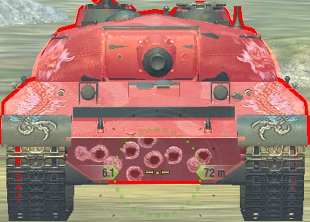 Its whole side and upper plate will appear red to enemies like this, but you can see that bar of armour above the tracks.