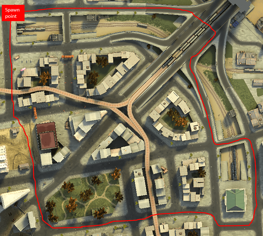 The highlighted line is the path used to test hard terrain mobility of heavy tanks.