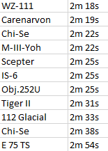 The lower the time, the faster the tank completed the track (leaving/returning to the exact spawn point).
