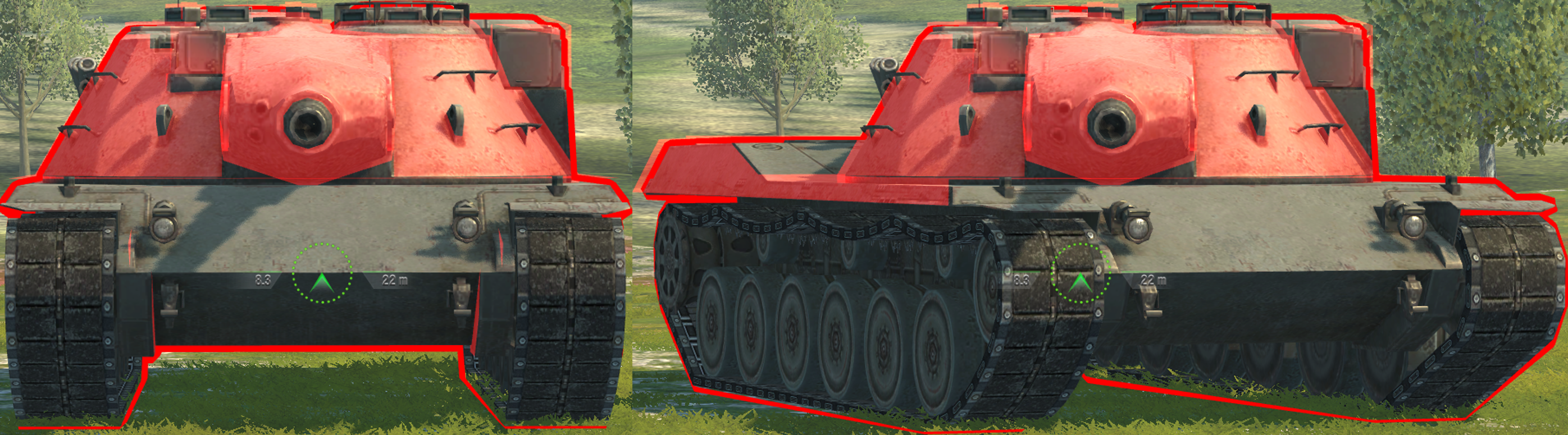 Do use the hull front to bait shots from enemies though, the angle of the front is so sharp that it very quickly becomes an auto-ricochet angle when its angled enough (see below).
