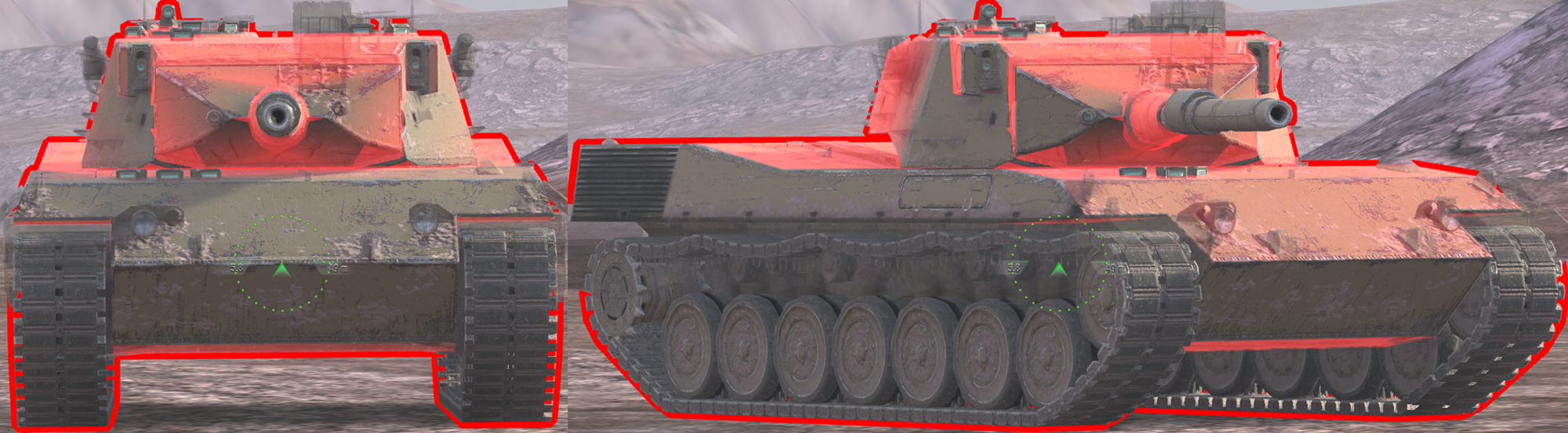 The turret is decent due to the cheeks being auto-ricochet angles, and the mantlet edges being very strong. The gun mantlet itself is weak, and despite showing slight red armour highlighting, enemy shells will always penetrate, when if using gun depression.