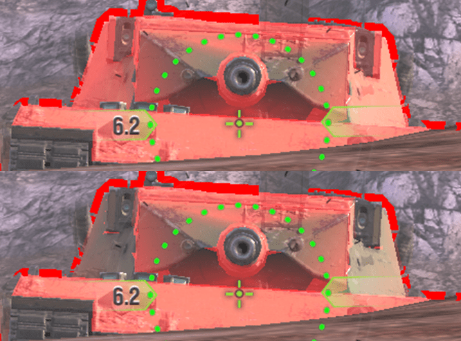The main use of enhanced armour will be to make the upper plate stronger, this is more likely to force enemies to use premium ammo, and will be most noticeable in situations where the hull is slightly angled, or you are using some (not all) gun depression. It won’t be noticeable when you play it, but the improved upper plate armour will show up as red in some situations where it otherwise wouldn’t (if you had been using improved assembly), and this can cause enemies to bounce, or at least do reduced damage by using premium ammo.