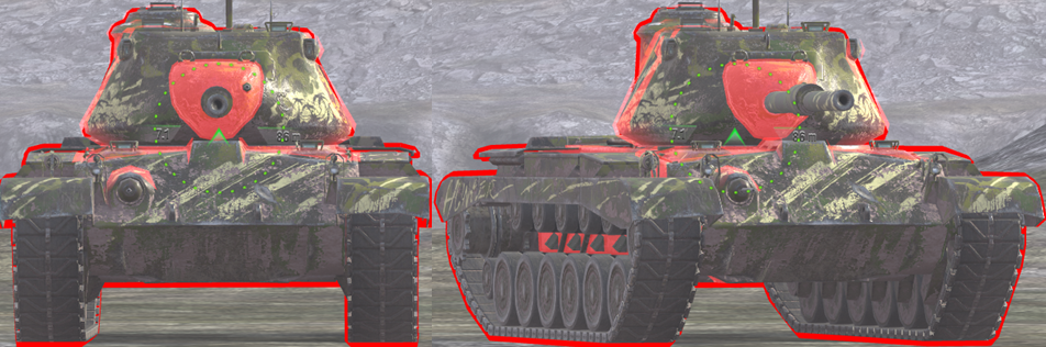 The hull and rest of the turret are easily penetrable to all standard ammo and most HESH shells you will face. The hull side is vulnerable to any regular HE shells from enemies.