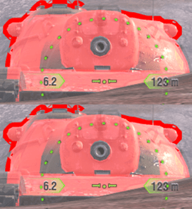 These tanks are also the most likely to bounce off the turret cheeks (the weakest part 235-245mm)