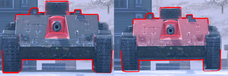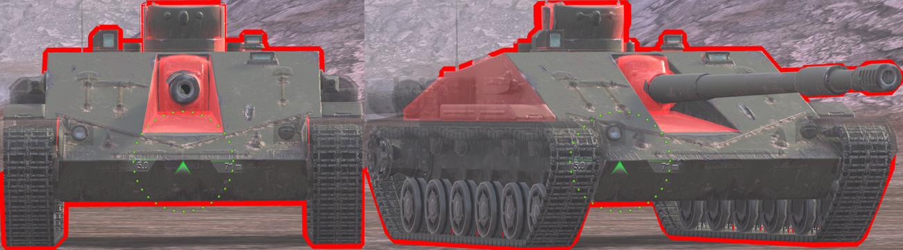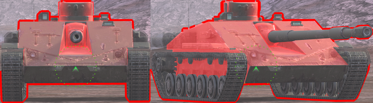 -There are no “strong areas” of armour on flat ground. If using at least -3 gun depression, then the entire upper plate can be an auto-ricochet.