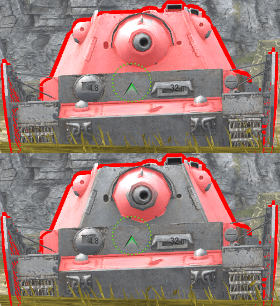 Note that the image on the right -> shows the tank angled very slightly, with the turret turned away slightly.
