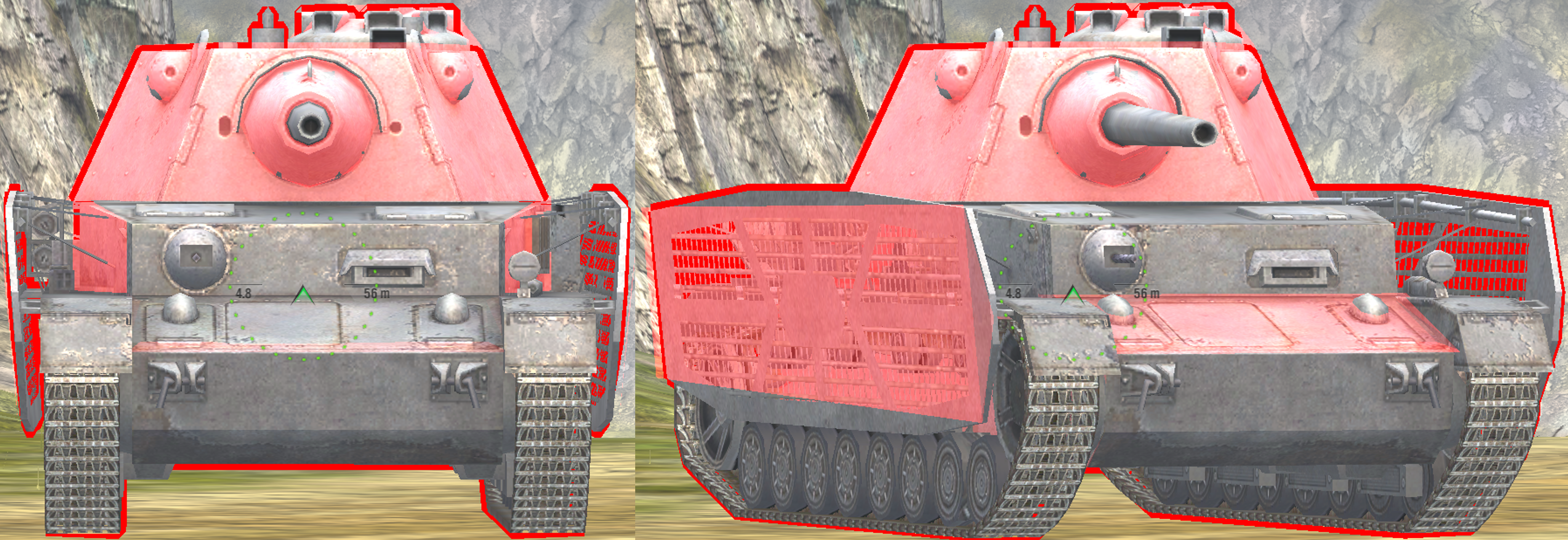 This is to show that the armour of the turret cheeks still works if angled slightly, but it can’t be turned far, or it becomes penetrable.