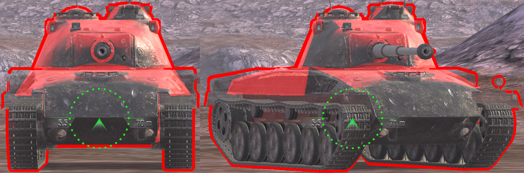 Despite showing up as “red” the side armour is penetrable to almost any tank if they hit the tracks.