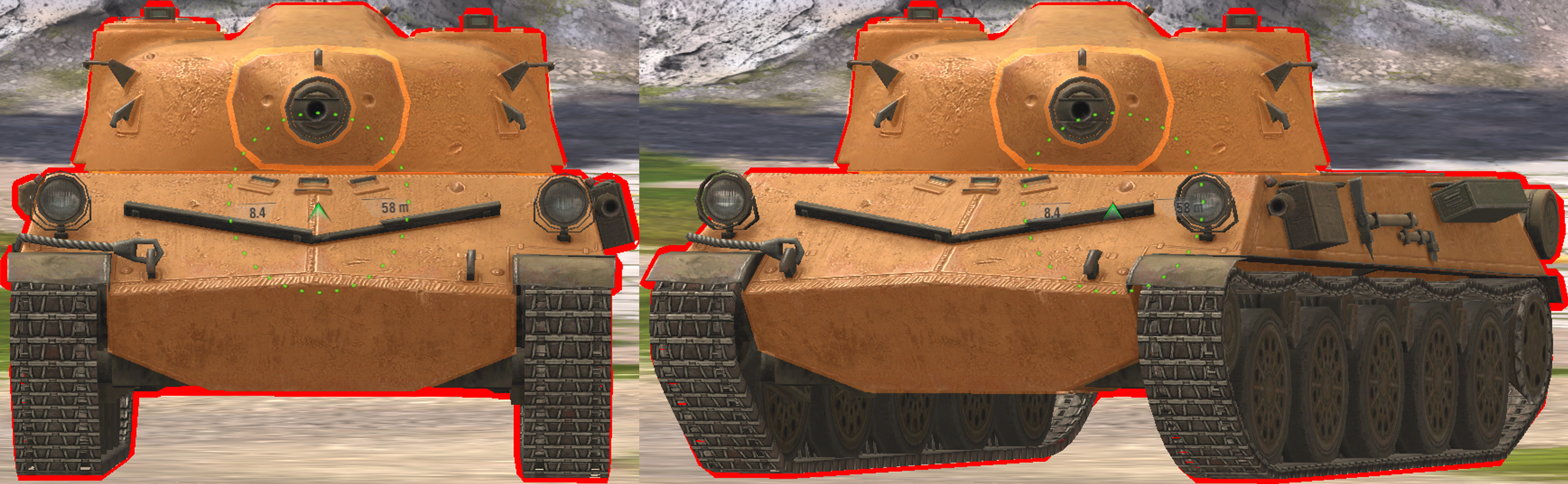 The above images are shown from the perspective of a 105mm gun with 53mm HE penetration.