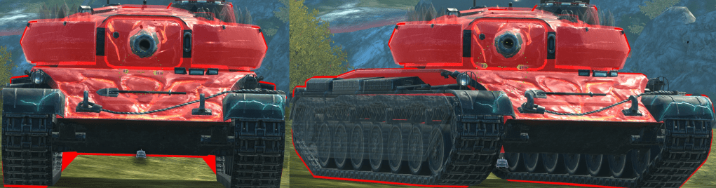 Overall this armour profile greatly benefits using hulldown positions, and its almost impossible to penetrate in such scenarios. The only weakpoints are right next to the gun (which are extremely hard to hit and therefore not very reliable), and the hatch, which becomes much harder to hit when the tank uses gun depression.