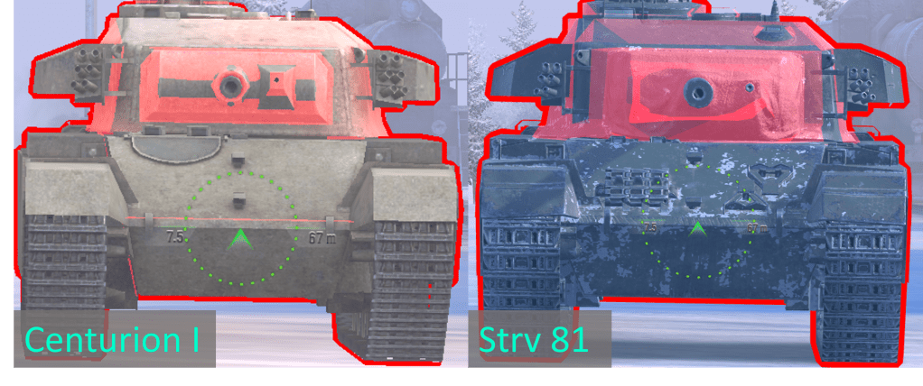 -The turret cheeks are roughly the same. The Centurion Mk.I actually has very troll cheeks which are better angled (Strv’s are flat), and are only penetrable at a narrow area directly next to the mantlet. On the Strv, the cheeks are flatter, and the weakest part is right at the edge, furthest from the mantlet.