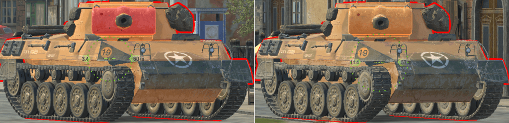 Note that in the images above, the tank is angled, but the armour numbers are taken as through the tank is not angled. Since HE doesn’t normalize and can’t overmatch, angling the Super Hellcat does help to increase the chances that a HE shell doesn’t penetrate.