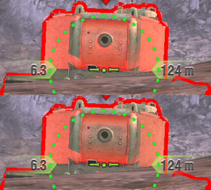 Since the T-150’s main armour use is angling, it is naturally great at sidescraping. In the images below you can see the T-150 both in a “regular” sidescrape, as other tanks would, and in an over-angled sidescrape, which you can pull off against same and lower tier enemies.