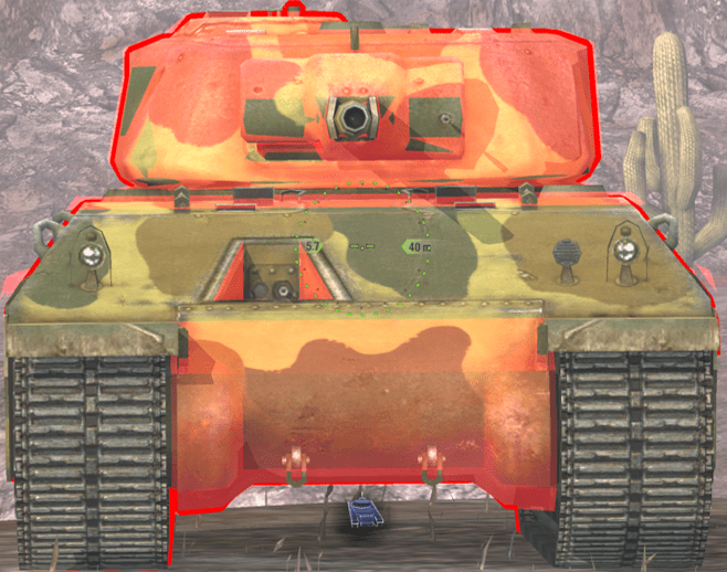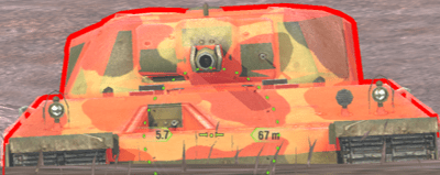 -T14 has 53mm of side armour, and its slightly angled. In tier 5 this is quite decent, but due to how wide the T14 is, it can’t sidescrape well.