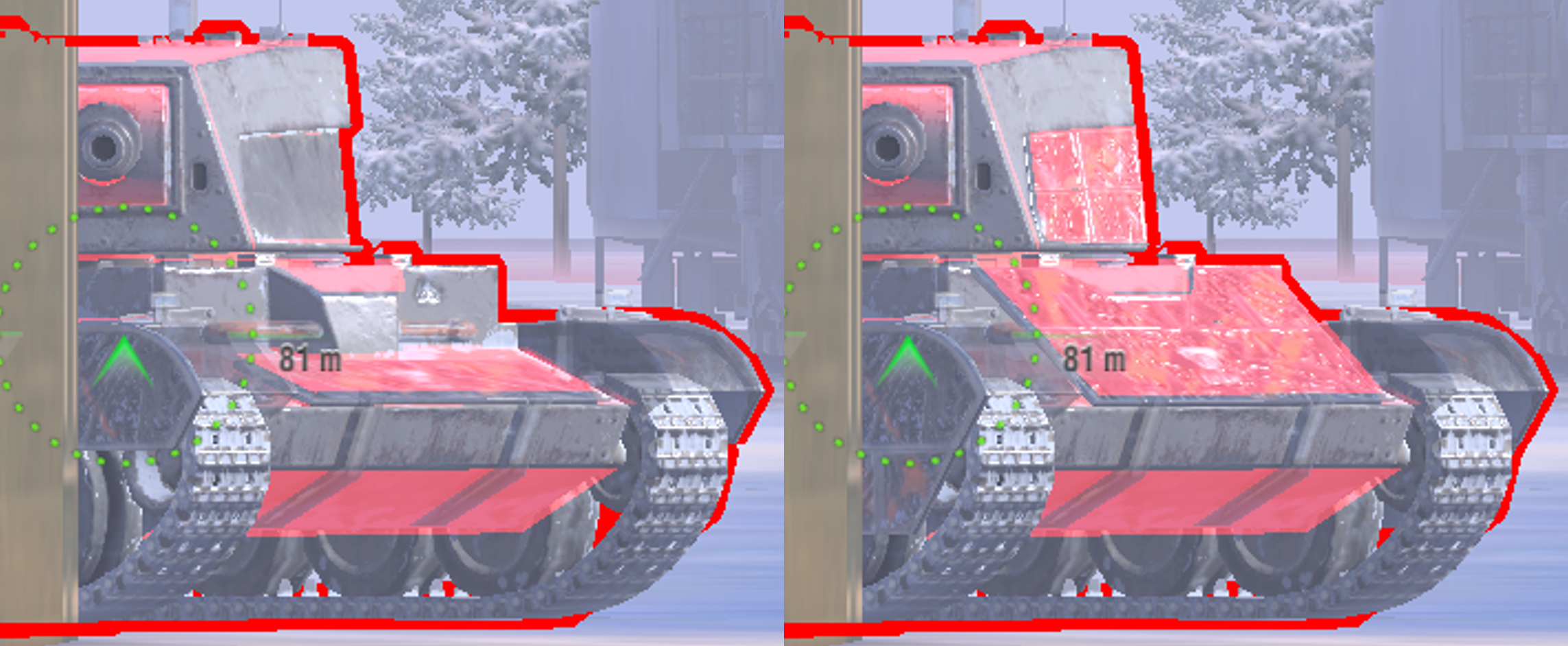 The below images show the penetration level representing a tier 8 heavy tank.Â