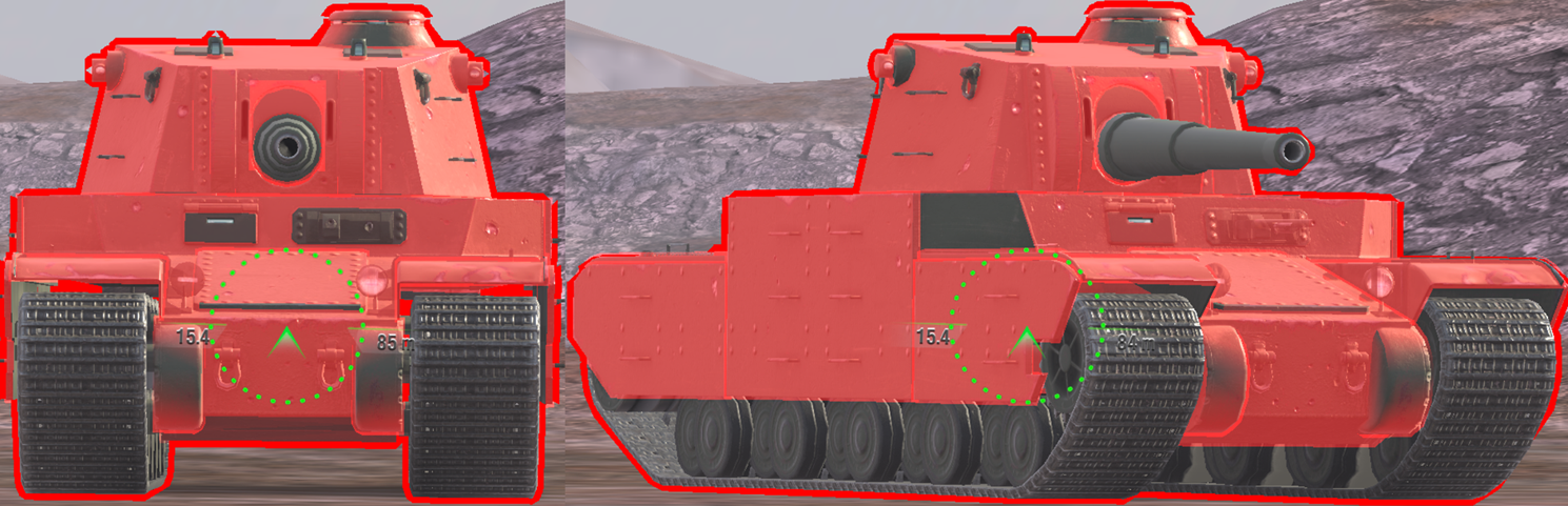 However, you have to be careful due to the angled hull “shoulders” on the edge of the upper plate. These are 210mm base thickness, and make it so that the Type 5 always has a weakpoint when angling or sidescraping.