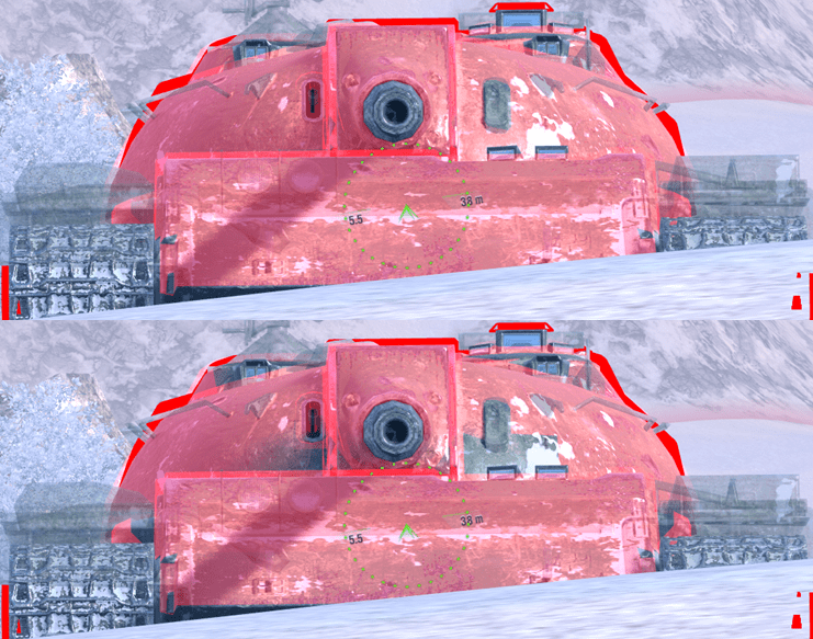 Having a sharper angle while sidescraping would also easily bounce the APCR on the base armour of the right image.