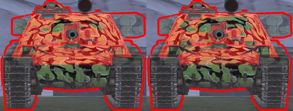 The image on the right shows the tank when its angled to the full extent of its gun arc.