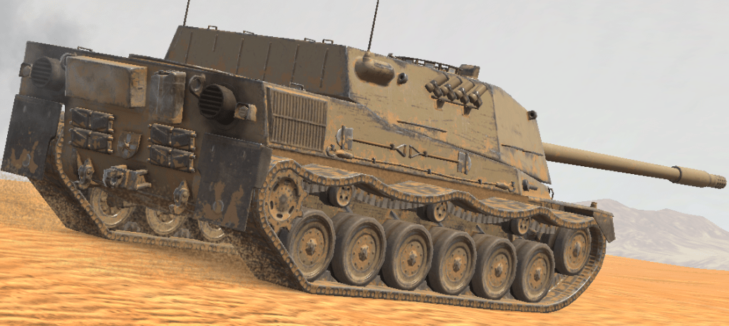 Try to stay on hard terrain, due to the terrible medium terrain mobility of the tank. Stay with teammates, since your turret isn’t fully traversing, and for a TD your DPM isn’t anything special. If you get isolated against faster or multiple enemies, the 1350 HP doesn’t last long, and your side armour will falter.