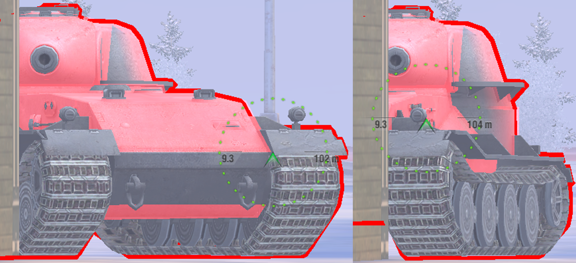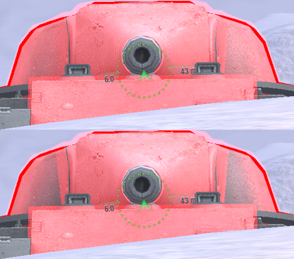 The correct way to angle is similar to the way the T28 HTC angles. You have to expose the strong frontal armour of the tank around the corner at an angle, then drive forward a bit so that your gun can hit the enemy. This is shown in the above left image.
